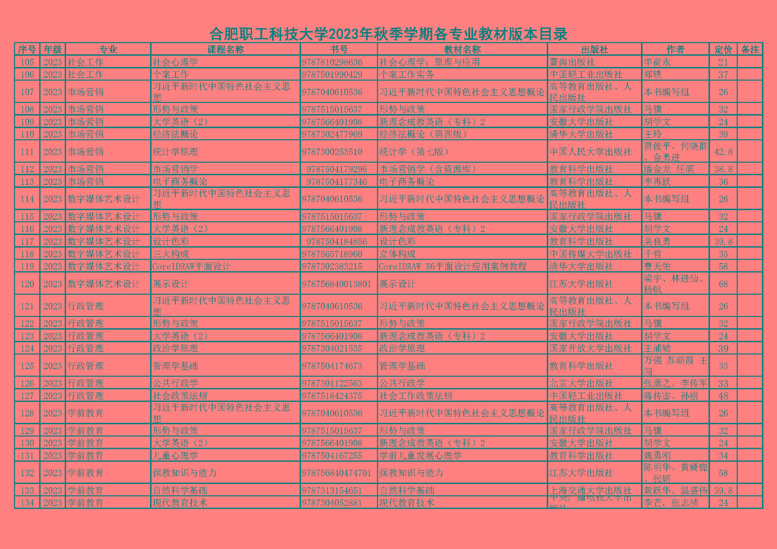 2、《合肥职工科技大学2023年秋季学期各专业教材版本目录》