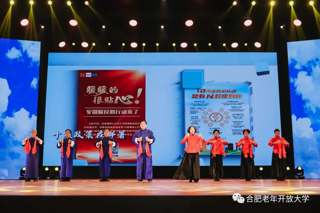 2023年3月16日,合肥市第四届社区教育成果展演在包河区凤凰剧院隆重举办。由合肥老年开放大学选送的节目《老有所学政策好》登上此次展演舞台。节目以快板的形式,生动宣传了合肥市“老有所学”暖民心行动 ,展现出了新时代老年人老有所学、老有所为、老有所乐的时代风采,受到了现场和线上观众的一致好评和高度赞许。