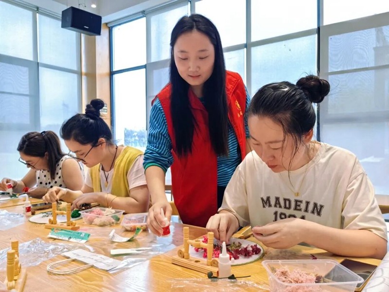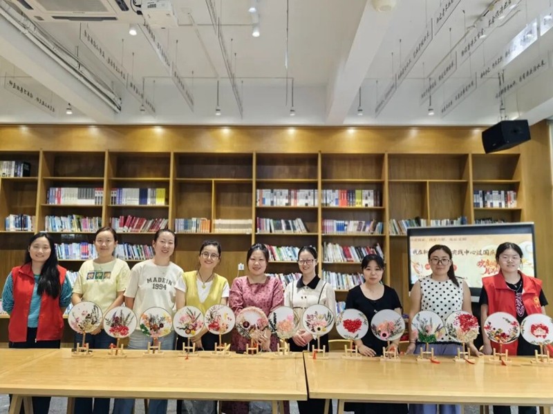 在双节来临之际,9月26日至27日,盛桥镇新时代文明实践所联合利家社工、盛桥镇综合文化站、盛桥村新时代文明实践站,在文翁书院共同举办“我在新时代文明中心过国庆/中秋”系列活动,为辖区群众送上别样的节日祝福。团扇寄情9月26日,活动聚焦外来务工群众,以“团扇寄情”为主题开展干花团扇制作活动。团扇象征“团团圆圆”,干花寓意“繁花似锦”,既承载着对家庭团聚的美好期盼,也是向祖国献礼的深情表达。现场,约20名外来务工群众热情参与,大家小心翼翼地拈起干花,按照心中所想排列、粘贴,在指尖的巧思中,一个个独具特色的精美团扇逐渐成型,也让异乡的节日多了一份温暖与归属感。