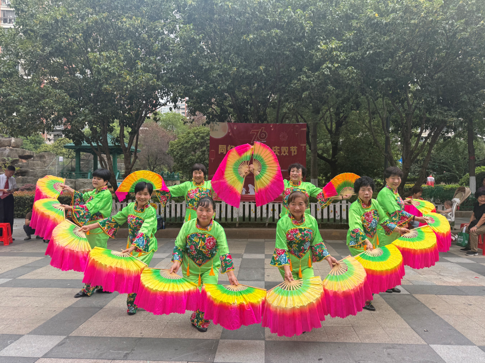 本次活动的文艺演出由小区志愿者团队和辖区幼儿园精心准备。孩子们天真烂漫的舞蹈、清脆嘹亮的歌声,赢得了在场居民的阵阵掌声;志愿者团队则带来了合唱、三句半、诗朗诵、舞蹈等丰富多彩的节目,展现了社区居民积极向上的精神风貌。活动中穿插的有奖问答环节,题目涵盖传统文化、国庆知识等内容,居民们踊跃参与,现场气氛热烈高涨。