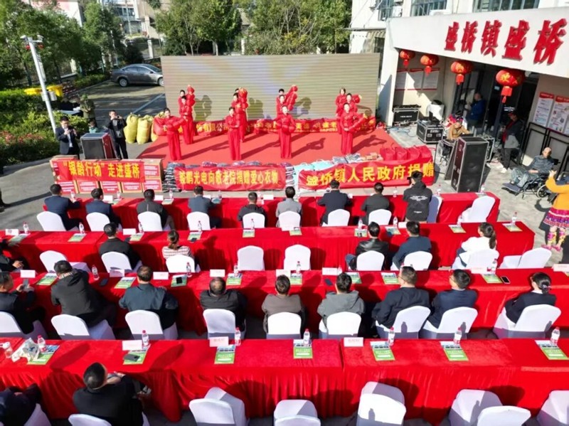 舞台一侧,爱心捐赠区布置得格外温馨。骏鹏光电、泉森服饰、农商行三家爱心企业带着对老人们的深切关爱,将一份份爱心物资整齐摆放,展现着企业良好的社会担当和对老年群体的深情关怀。