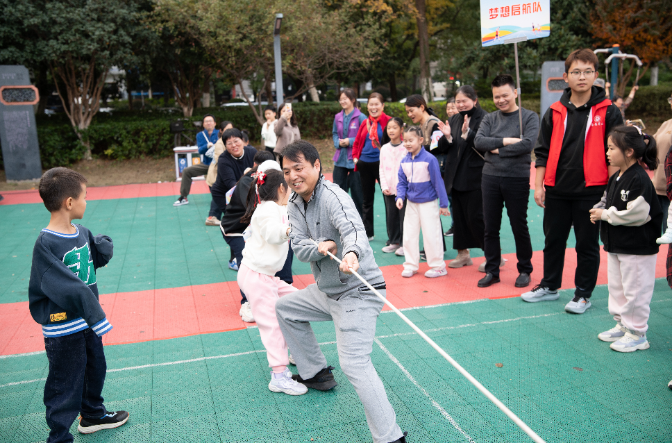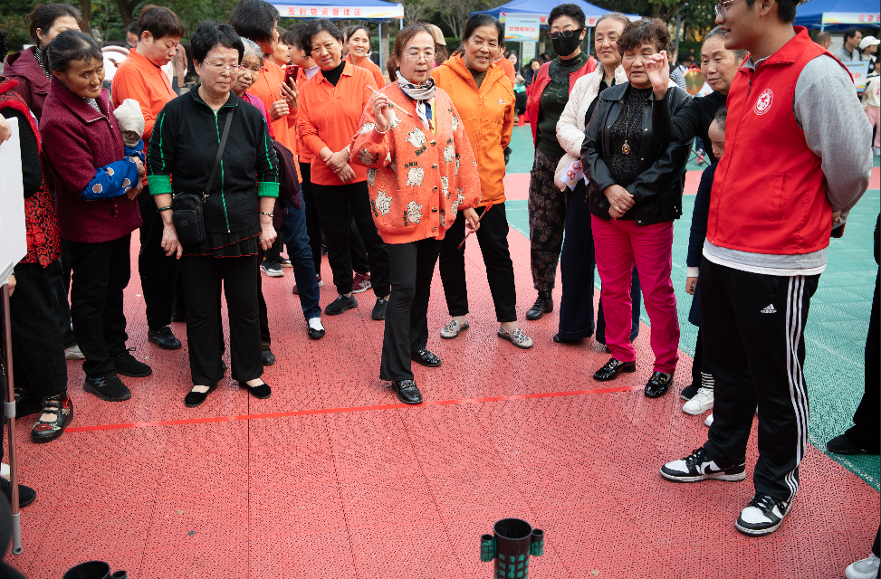 运动会于午后暖阳中拉开帷幕,正如诗中所言“一年好景君须记,最是橙黄橘绿时”,近百名社区居民齐聚洪石公园,以运动之名,赴邻里之约。活动设置青少年组与老年组两大板块,涵盖蒙眼敲锣、同舟共济、投壶、眼疾手快、力拔山河、陆地冰壶等多个项目,既传承传统体育文化,又融入现代协作理念,真正实现“老少皆宜,全民参与”。
