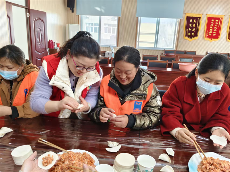 上午九点,社区活动室内暖意融融,笑语喧阗。十余名身着橙色工装的环卫工人受邀围坐桌旁,社区工作人员与志愿者早已备齐新鲜的肉馅、雪白的面皮和各类调料。擀皮、包馅、捏合,大家分工协作,手法娴熟的环卫工人还现场传授技巧,原本互不相识的邻里在案板前拉近了距离。
