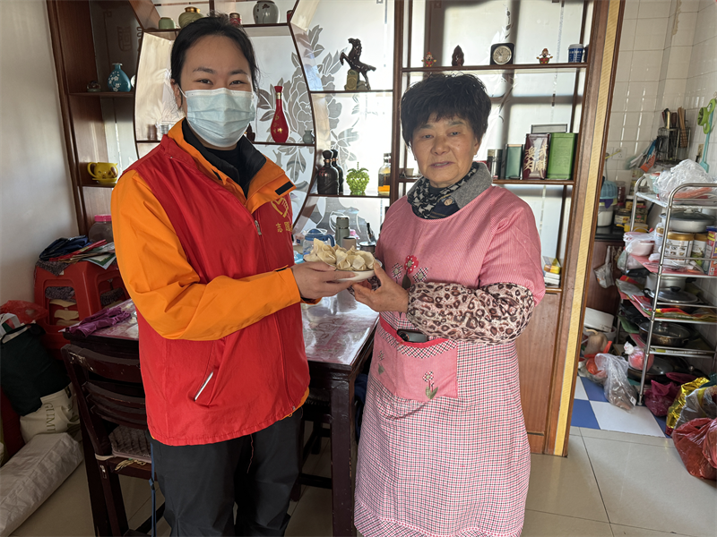 在关爱环卫工人的同时,社区志愿者化身“暖心使者”,将包好的新鲜生饺子仔细打包分装,配上煮制说明,逐一送到辖区独居老人家中。“王阿姨,我们给您送冬至生饺子来啦,您啥时候想吃,下锅煮几分钟就好!”敲开独居老人王秀兰的家门,志愿者一边递过装着生饺子的保鲜盒,一边耐心讲解煮法,陪着老人拉家常、查隐患。“这饺子包得规整,新鲜又方便,比我自己买的还省心!”王阿姨捧着沉甸甸的饺子,眼角泛起笑意。